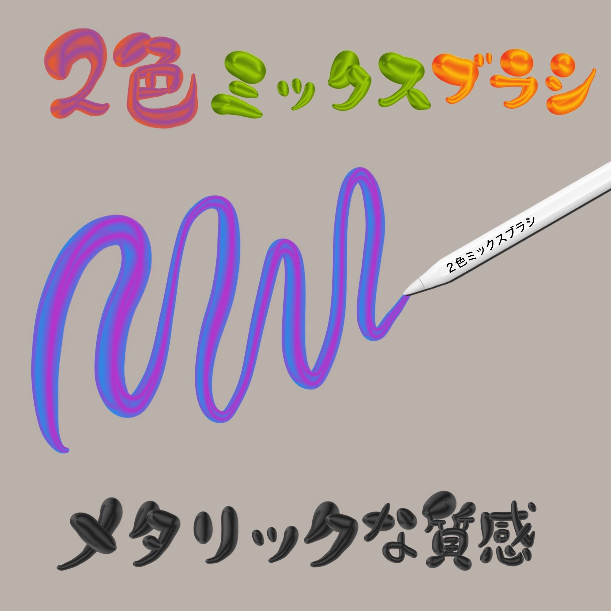 お好きな2色を選ぶだけで、簡単にメタリックな質感を演出できるProcreate用自作ブラシ。